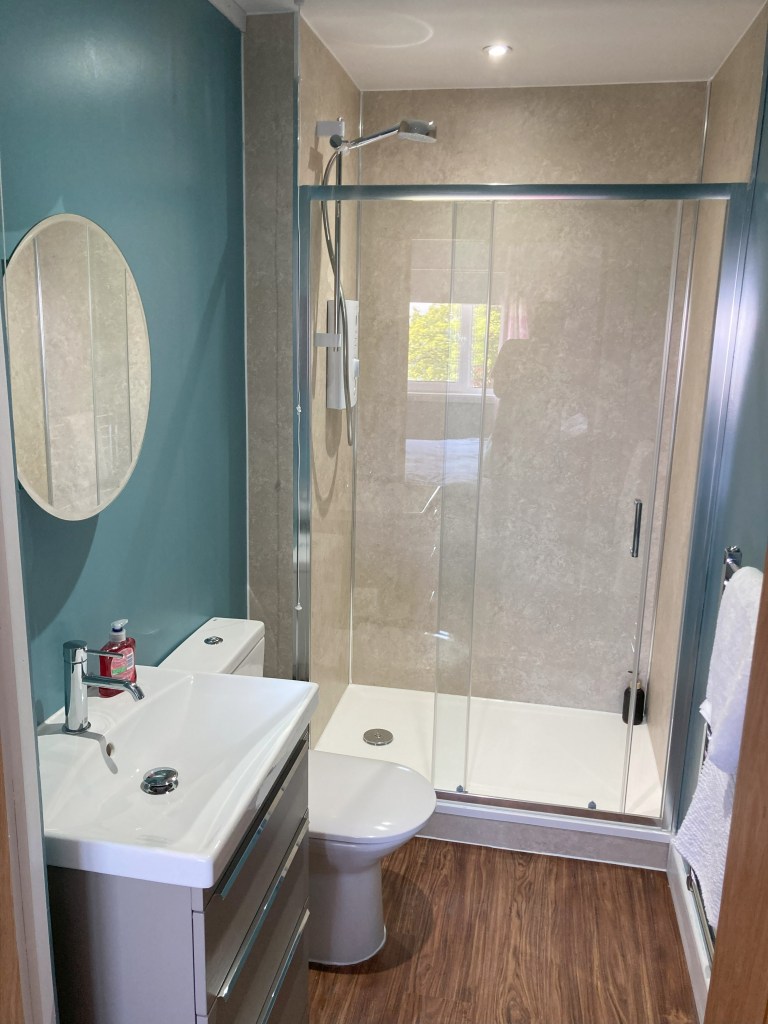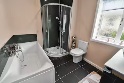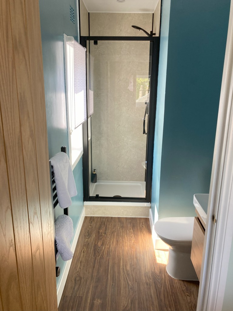 Upstairs, there are 3 double-bedrooms, tastefully decorated, and made up with fresh linen & towels. The bathroom is spacious, with a separate shower & bath. There is also a toilet downstairs.