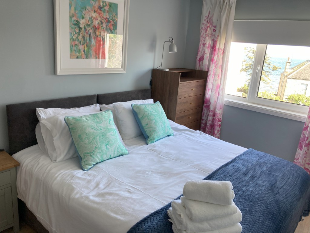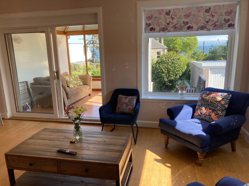 The property is a 19th century cottage with views across the sea to Edinburgh, sitting in a cosy glass conservatory. It has a spacious living/dining room, with fast Wi-Fi access & charming electric fire. The kitchen is modern, with all accessories & appliances to make your stay easy & comfortable. These include an American-style fridge/freezer, washer-dryer, oven/hob, coffee machine, kettle & toaster.